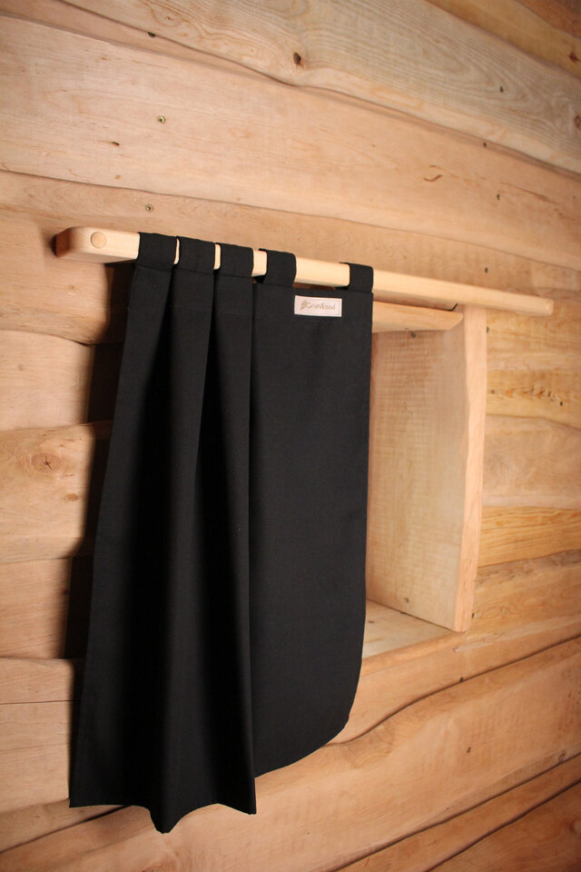 Штора GrinWood в комплекте с карнизом из массива липы идеально подходит для использования в бане. Она станет не только функциональным, но и стильным элементом декора, который защищает от яркого света и создает дополнительную приватность в парном помещении. Благодаря простому креплению, установить штору не составит труда – она легко крепится к карнизу при помощи петель с липучками Velcro.